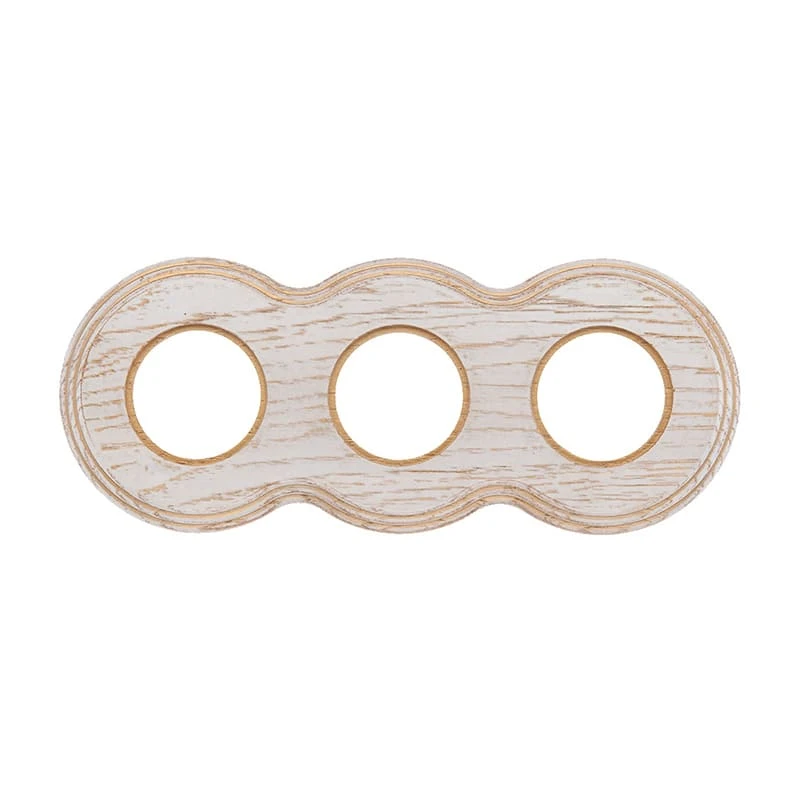 Рамка 3 местная восьмерка из дуба С33ВДЗ Salvador белого цвета с золотой патиной представляет важное дополнение для декоративных розеток и ретро выключателей в современных интерьеров. Данная модель рамки из массива дуба часто используется в интерьерах в стилях лофт, винтаж, модерн, стимпанк и минимализм.Декоративная рамка Сальвадор не является обязательным элементом декора электрики, но без неё дизайнерское решение будет не завершённым. Выбеленная с золотой патиной винтажная рамка отлично сочетается в комплектации с наружной ретро проводкой, дизайнерскими изоляторами и декоративными распаечными коробками.Приобретая комплект ретро электрики Вы получаете не только электрификацию Вашего дома, но и отличное дизайнерское решение!