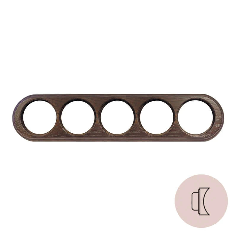 Рамка на бревно 200 мм. 5 местная овал НО15ВГ200 Salvador из натурального дуба. Данная модель используется для монтажа электротоваров на поверхность бревна или блок-хауса. Больше никаких выпилов! Использование рамки на бревно существенно облегчает процесс установки электротоваров. Рамка на бревно 200 мм. для декоративных розеток и ретро выключателей особенно популярна в интерьерах в стилях лофт, модерн, стимпанк, винтаж и минимализм.