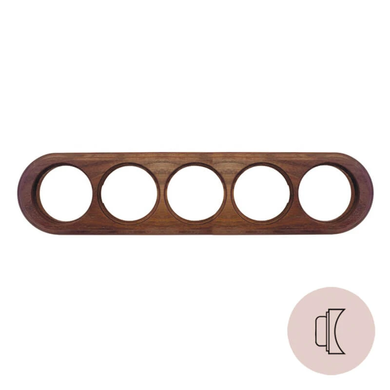 Рамка на бревно 240 мм. 5 местная овал НО15ДК240 Salvador из натурального дуба. Данная модель используется для монтажа электротоваров на поверхность бревна или блок-хауса. Больше никаких выпилов! Использование рамки на бревно существенно облегчает процесс установки электротоваров. Рамка на бревно 240 мм. для декоративных розеток и ретро выключателей особенно популярна в интерьерах в стилях лофт, модерн, стимпанк, винтаж и минимализм.