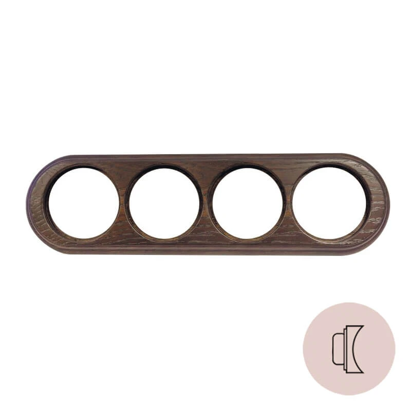 Рамка на бревно 260 мм. 4 местная овал НО14ВГ260 Salvador из натурального дуба. Данная модель используется для монтажа электротоваров на поверхность бревна или блок-хауса. Больше никаких выпилов! Использование рамки на бревно существенно облегчает процесс установки электротоваров. Рамка на бревно 260 мм. для декоративных розеток и ретро выключателей особенно популярна в интерьерах в стилях лофт, модерн, стимпанк, винтаж и минимализм.