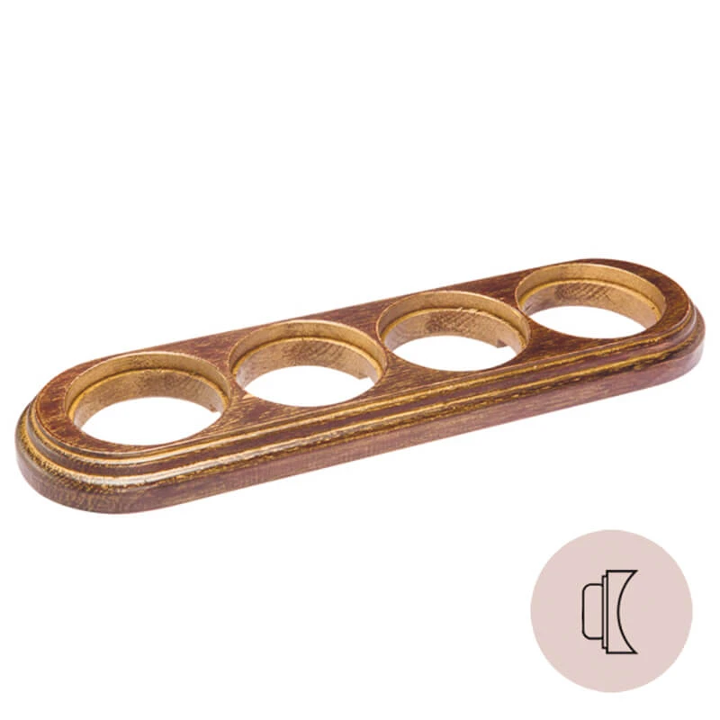 Рамка на бревно 280 мм. 4 местная овал НО14ВГЗ280 Salvador из натурального дуба. Данная модель используется для монтажа электротоваров на поверхность бревна или блок-хауса. Больше никаких выпилов! Использование рамки на бревно существенно облегчает процесс установки электротоваров. Рамка на бревно 280 мм. для декоративных розеток и ретро выключателей особенно популярна в интерьерах в стилях лофт, модерн, стимпанк, винтаж и минимализм.