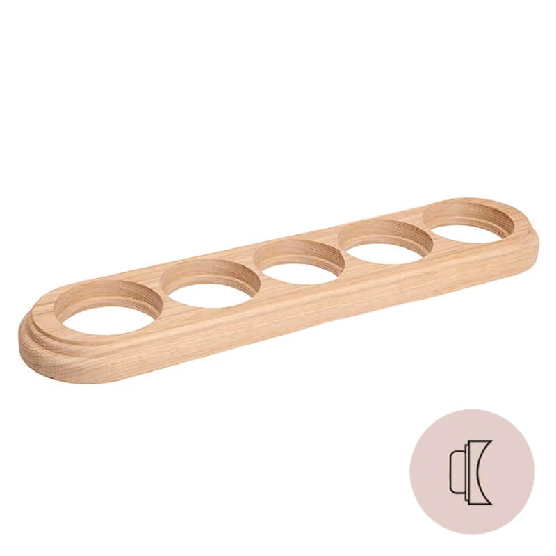 Рамка на бревно 280 мм. 5 местная овал НО15НК280 Salvador из натурального дуба. Данная модель используется для монтажа электротоваров на поверхность бревна или блок-хауса. Больше никаких выпилов! Использование рамки на бревно существенно облегчает процесс установки электротоваров. Рамка на бревно 280 мм. для декоративных розеток и ретро выключателей особенно популярна в интерьерах в стилях лофт, модерн, стимпанк, винтаж и минимализм.