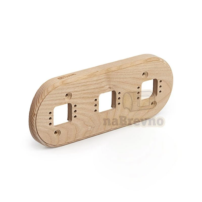 Тройная накладка на бревно 240мм из натурального ясеня R3-240 ТМ naBrevno представляет важное дополнение для декоративных розеток и ретро выключателей в современном деревянном строительстве. Данная модель накладки используется для монтажа ретро розеток и выключателей на поверхность бревна или блок-хауса.