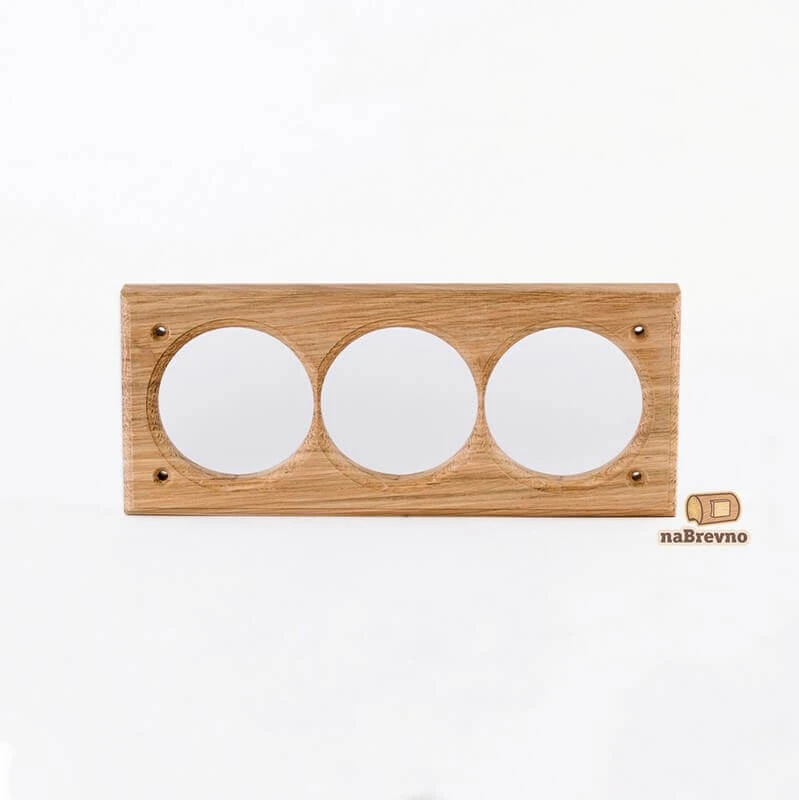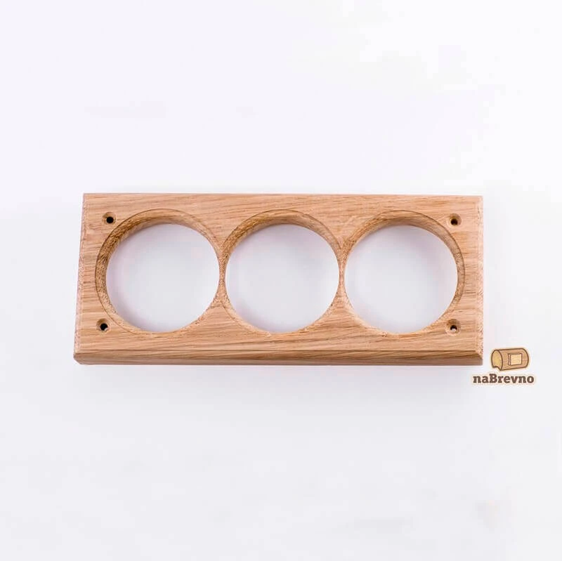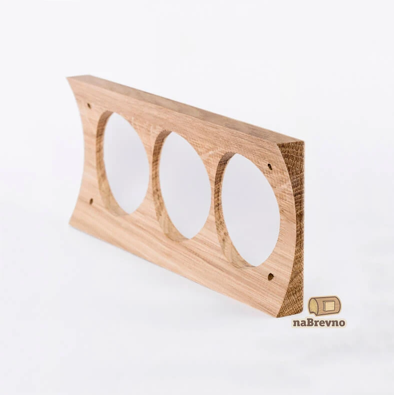 Тройная накладка на бревно 280 мм. из натурального дуба V3-280-D naBrevno представляет важное дополнение для декоративных розеток и ретро выключателей в современном деревянном строительстве. Данная модель используется для монтажа электротоваров на поверхность бревна или блок-хауса.