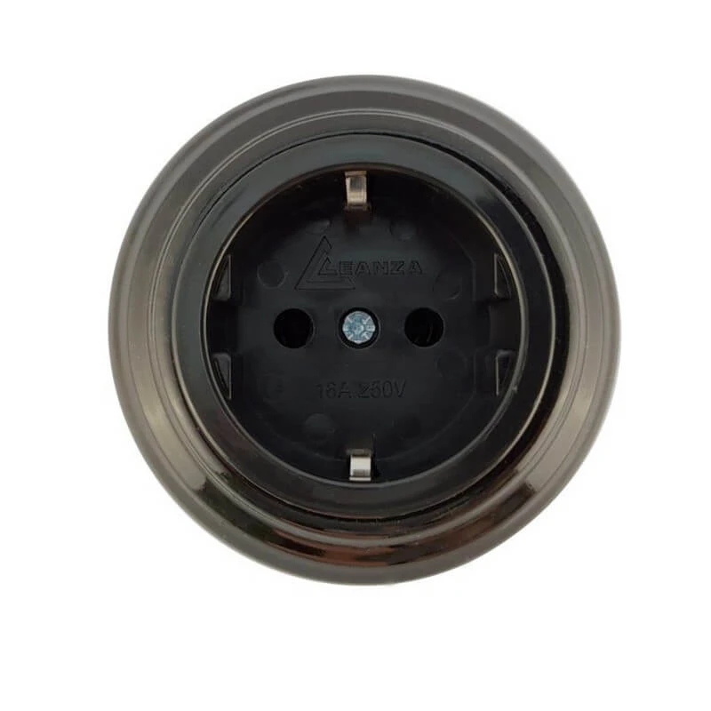 Ретро розетка электрическая РЧC ЛЕАНЗА цвет черный в купе с ретро проводкой - это отличное решение для современных интерьеров. Данная модель декоративной розетки особенно часто используется в интерьерах в стилях лофт, модерн, стимпанк, винтаж и минимализм. Ретро розетка РЧC ЛЕАНЗА цвет черный отвечает всем необходимым стандартам и ГОСТам, имеет сертификат качества. При выборе винтажной розетки Вы не сможете пройти мимо ретро розеток ЛЕАНЗА. Дизайнерская розетка цвет черный сочетается в комплектации с наружной ретро проводкой и винтажными выключателями. Ретро розетки для электропроводки и ее отделки органично соединяют в себе эстетичность и функциональность.