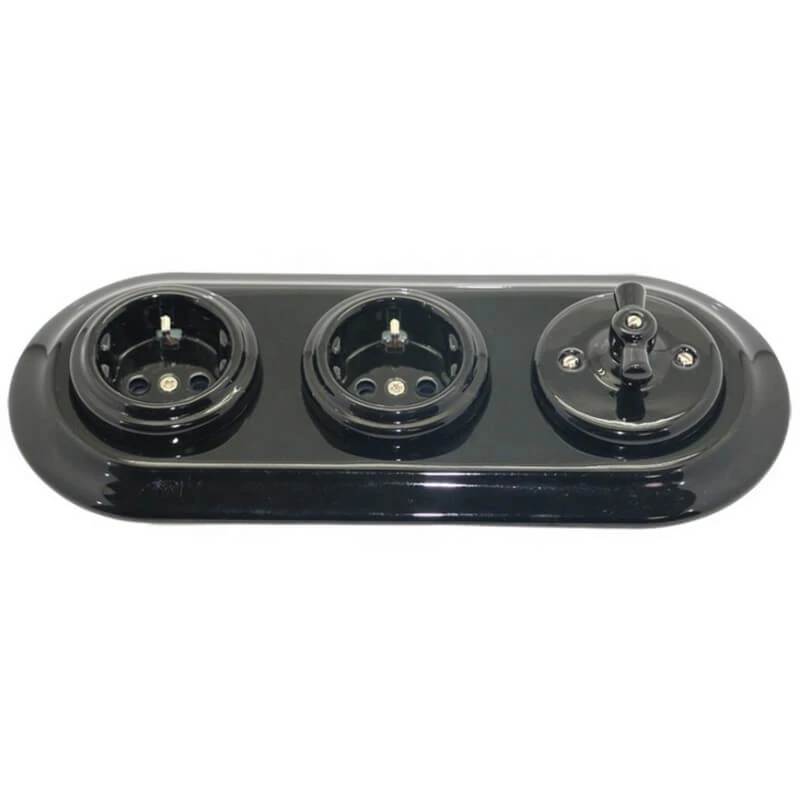 Декоративная ретро розетка электрическая RS1-80008 Retrika цвет черный представляет собой отличное решение для современных и классических интерьеров. Данная модель дизайнерской розетки особенно популярна в интерьерах в стилях ретро, лофт, стимпанк, модерн и минимализм. Винтажная розетка RS1-80008 Ретрика цвет черный отвечает всем необходимым стандартам и ГОСТам, имеет сертификат качества. Если у Вас есть чувство вкуса, то при выборе распределительной коробки Вы не сможете пройти мимо ретро данной модели торговой марки Retrika. Дизайнерская розетка отлично сочетается в комплектации с наружной ретро проводкой, ретро изоляторами и винтажными выключателями. Основа из высококачественной керамики благородного цвета удовлетворит даже самый притязательный вкус.