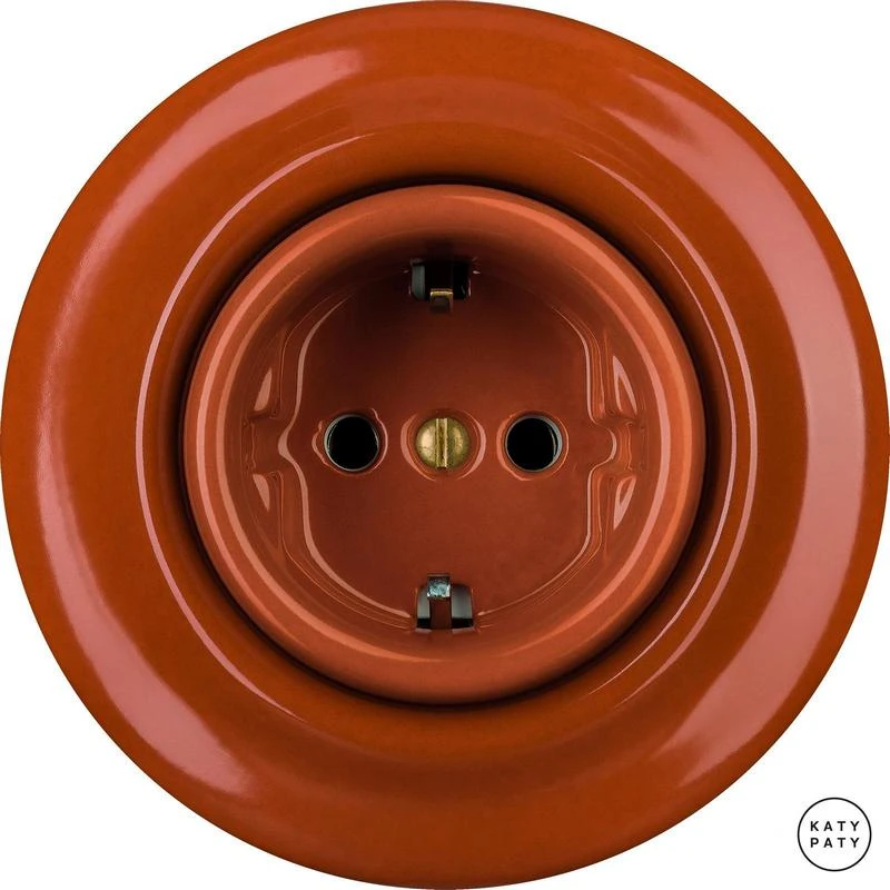 Ретро розетка OPAURGs цвет красно-коричневый от чешского бренда Katy Paty изготовлена вручную из фарфора. Данная модель выглядит презентабельно и отлично дополнит интерьер как в современном, так и в ретро стилях. Дизайнерская розетка Katy Paty отличается функциональностью и простотой в использовании. Данная модель разработана с учётом всех современных требований и соответствует европейским стандартам.Винтажная розетка OPAURGs цвет красно-коричневый прекрасно сочетается в комплектации с электротоварами для скрытого монтажа. Модель идёт в комплекте с фарфоровой рамкой, шурупы представлены в четырёх цветах на выбор: нержавейка, черный, серебро, латунь.