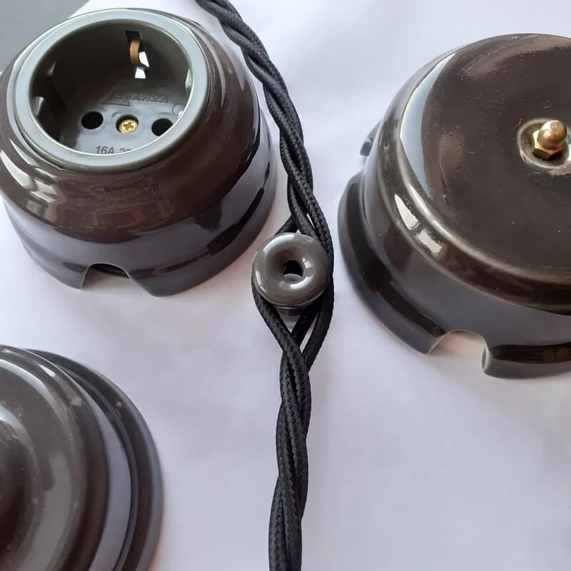 Ретро розетка электрическая РСЗ ЛЕАНЗА цвет серый в купе с ретро проводкой - это отличное решение для современных интерьеров. Данная модель декоративной розетки особенно часто используется в интерьерах в стилях лофт, модерн, стимпанк, винтаж и минимализм. Ретро розетка РСЗ ЛЕАНЗА цвет серый отвечает всем необходимым стандартам и ГОСТам, имеет сертификат качества. При выборе винтажной розетки Вы не сможете пройти мимо ретро розеток ЛЕАНЗА. Дизайнерская розетка цвет серый сочетается в комплектации с наружной ретро проводкой и винтажными выключателями. Ретро розетки для электропроводки и ее отделки органично соединяют в себе эстетичность и функциональность.