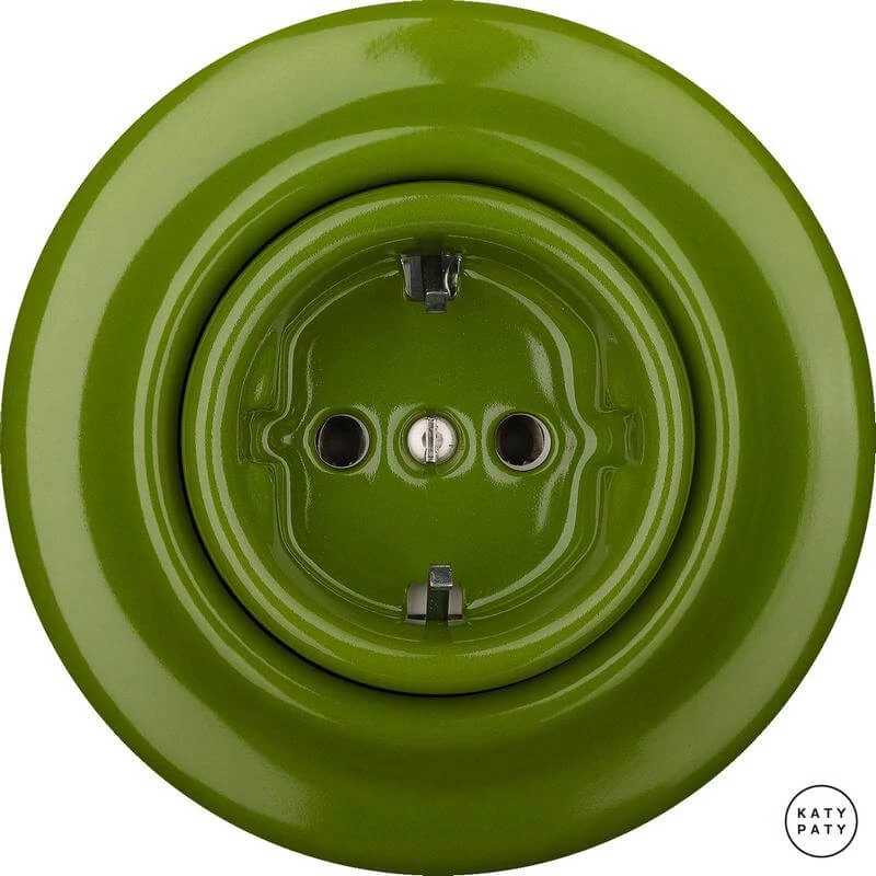 Ретро розетка NICHGs цвет ярко-зеленый от чешского бренда Katy Paty изготовлена вручную из фарфора. Данная модель выглядит презентабельно и отлично дополнит интерьер как в современном, так и в ретро стилях. Дизайнерская розетка Katy Paty отличается функциональностью и простотой в использовании. Данная модель разработана с учётом всех современных требований и соответствует европейским стандартам.Винтажная розетка NICHGs цвет ярко-зеленый прекрасно сочетается в комплектации с электротоварами для скрытого монтажа. Модель идёт в комплекте с фарфоровой рамкой, шурупы представлены в четырёх цветах на выбор: нержавейка, черный, серебро, латунь.
