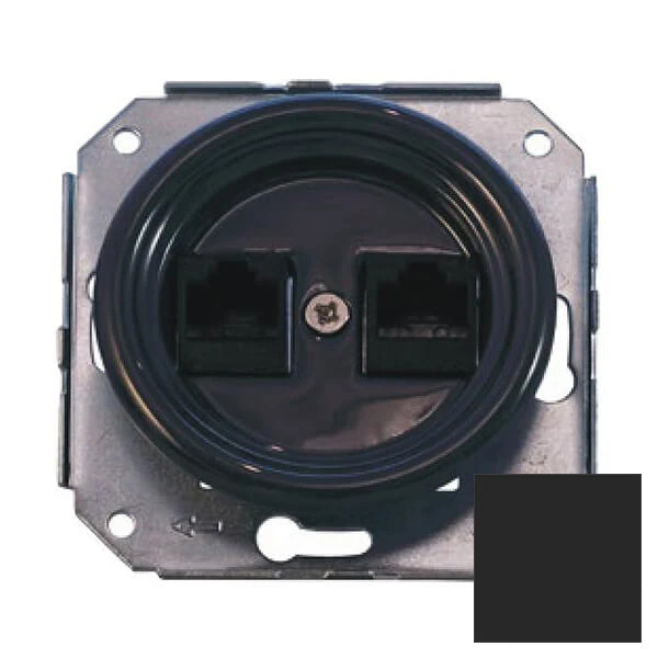 Декоративная ретро розетка интернет B01-09 Retrika цвет черный матовый представляет собой отличное решение для современных и классических интерьеров. Данная модель дизайнерской розетки особенно популярна в интерьерах в стилях ретро, лофт, стимпанк, модерн и минимализм. Винтажная розетка B01-09 Ретрика цвет черный матовый отвечает всем необходимым стандартам и ГОСТам, имеет сертификат качества. Если у Вас есть чувство вкуса, то при выборе распределительной коробки Вы не сможете пройти мимо ретро данной модели торговой марки Retrika. Дизайнерская розетка отлично сочетается в комплектации с наружной ретро проводкой, ретро изоляторами и винтажными выключателями. Основа из высококачественной керамики благородного цвета удовлетворит даже самый притязательный вкус.