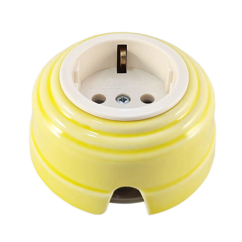 Ретро розетка электрическая РПЖС-90 ЛЕАНЗА цвет желтый вместе с ретро проводкой - это отличное решение для современных интерьеров. Данная модель декоративной розетки особенно часто используется в интерьерах в стилях лофт, модерн, стимпанк, винтаж и минимализм. Ретро розетка РПЖС-90 ЛЕАНЗА цвет желтый отвечает всем необходимым стандартам и ГОСТам, имеет сертификат качества. При выборе винтажной розетки Вы не сможете пройти мимо ретро розеток LEANZA. Дизайнерская розетка цвет желтый сочетается в комплектации с наружной ретро проводкой и винтажными выключателями. Ретро розетки для электропроводки и ее отделки органично соединяют в себе эстетичность и функциональность.