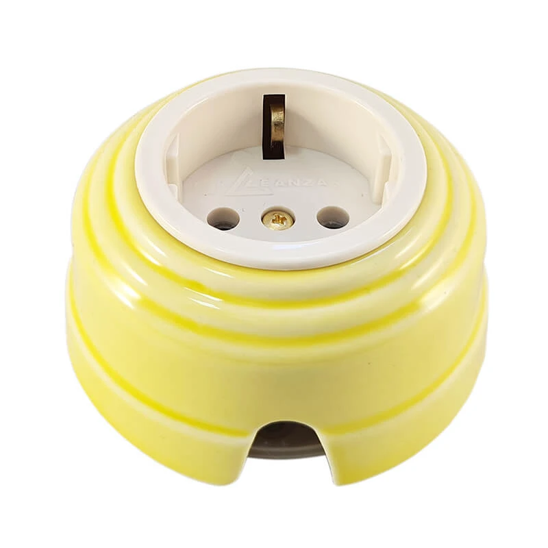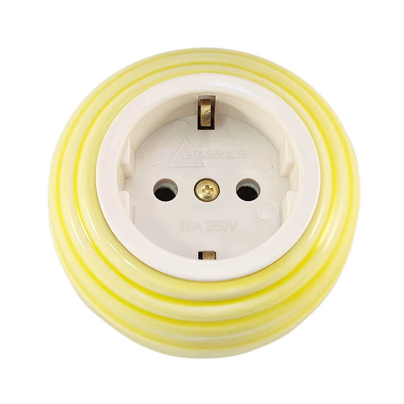 Ретро розетка электрическая РПЖЗ-90 ЛЕАНЗА цвет желтый вместе с ретро проводкой - это отличное решение для современных интерьеров. Данная модель декоративной розетки особенно часто используется в интерьерах в стилях лофт, модерн, стимпанк, винтаж и минимализм. Ретро розетка РПЖЗ-90 ЛЕАНЗА цвет желтый отвечает всем необходимым стандартам и ГОСТам, имеет сертификат качества. При выборе винтажной розетки Вы не сможете пройти мимо ретро розеток LEANZA. Дизайнерская розетка цвет желтый сочетается в комплектации с наружной ретро проводкой и винтажными выключателями. Ретро розетки для электропроводки и ее отделки органично соединяют в себе эстетичность и функциональность.