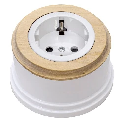 Ретро розетка с заземлением и шторками (фигурный) электрическая PL12.2WT.DK Salvador цвета белый вместе с ретро проводкой - это отличное решение для современных интерьеров. Данная модель декоративной розетки особенно часто используется в интерьерах в стилях лофт, модерн, стимпанк и винтаж.
