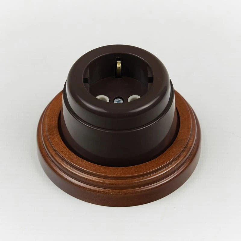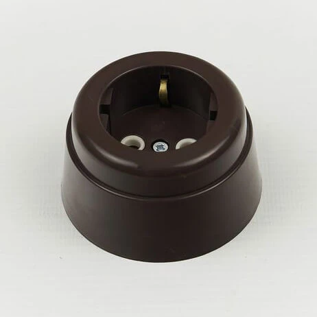 Ретро розетка с заземлением "Вектор" ВР-кор Interior Electric цвет коричневый представляет собой отличное решение для винтажных и классических интерьеров. Данная модель ВР-кор Interior Electric отвечает всем необходимым стандартам и ГОСТам, имеет сертификат качества. Дизайнерская розетка Interior Electric отлично сочетается в комплектации с наружной ретро проводкой, ретро изоляторами и винтажными выключателями. Основа из высококачественного материала благородного оттенка удовлетворит даже самый притязательный вкус.