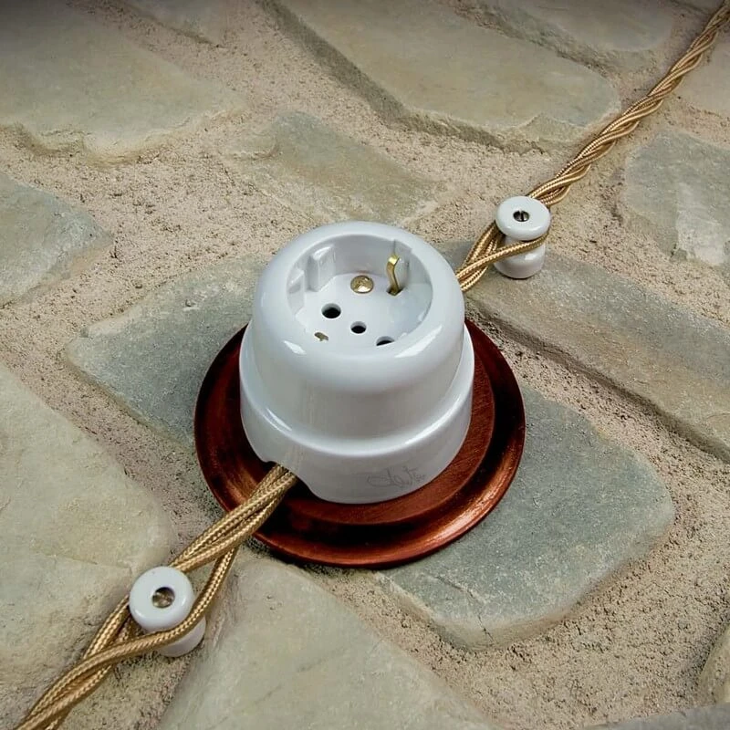 Ретро розетка с заземляющим контактом электрическая 84011 Fanton цвет белый - это отличное решение для современных интерьеров. Данная розетка впишется в интерьеры в стилях лофт, модерн, стимпанк, винтаж и минимализм. Ретро розетка Fanton отвечает всем необходимым стандартам и ГОСТам, имеет сертификат качества. При выборе винтажной электрики Вы не сможете пройти мимо ретро розеток Fanton в цвете белый. Дизайнерская розетка сочетается в комплектации с наружной ретро проводкой и винтажными выключателями. Ретро розетки для электропроводки и ее отделки органично соединяют в себе эстетичность и функциональность.