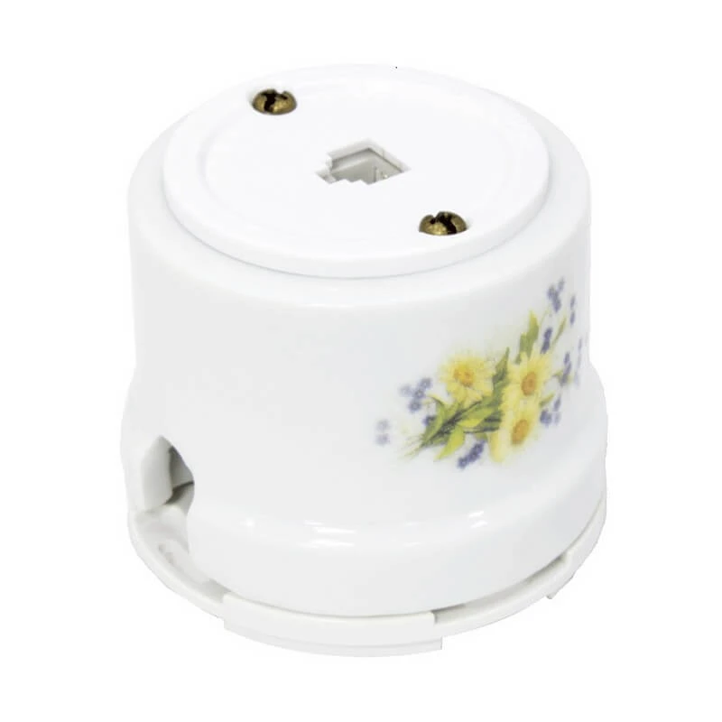 Ретро розетка телефонная OP.TEL.RM Salvador цвет ромашка вместе с ретро проводкой - это отличное решение для современных интерьеров. Данная модель декоративной розетки особенно часто используется в интерьерах в стилях лофт, модерн, стимпанк, винтаж и минимализм. Ретро розетка OP.TEL.RM Salvador цвет ромашка отвечает всем необходимым стандартам и ГОСТам, имеет сертификат качества. При выборе винтажной розетки Вы не сможете пройти мимо ретро розеток Сальвадор. Дизайнерская розетка сочетается в комплектации с наружной ретро проводкой и винтажными выключателями. Ретро розетки для электропроводки и ее отделки органично соединяют в себе эстетичность и функциональность.