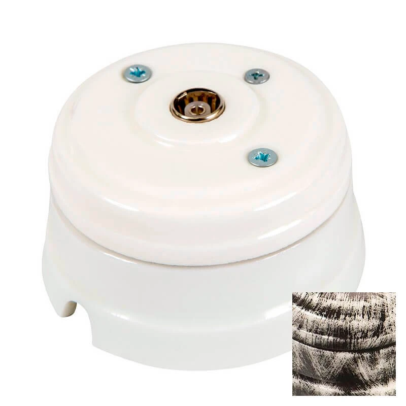 Ретро розетка телевизионная GE70321-40 ТМ МезонинЪ цвет Art-Nero из коллекции вместе с ретро проводкой - это отличное решение для современных интерьеров. Данная модель декоративной розетки особенно часто используется в интерьерах в стилях лофт, модерн, стимпанк, винтаж и минимализм. Ретро розетка GE70321-40 ТМ МезонинЪ цвет Art-Nero отвечает всем необходимым стандартам и ГОСТам, имеет сертификат качества. При выборе винтажной розетки Вы не сможете пройти мимо ретро розеток ТМ МезонинЪ. Дизайнерская розетка сочетается в комплектации с наружной ретро проводкой и винтажными выключателями. Ретро розетки для электропроводки и ее отделки органично соединяют в себе эстетичность и функциональность.