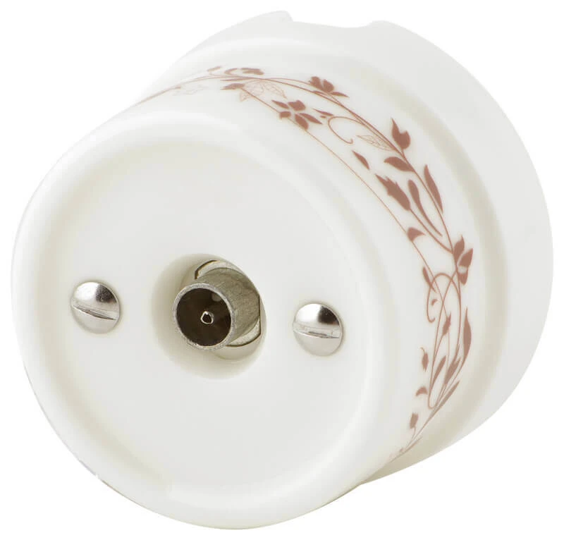 Ретро розетка ТВ Werkel a036797-ОЛ цвет орнамент лиана в купе с ретро проводкой - это отличное решение для современных интерьеров. Данная модель декоративной розетки особенно часто используется в интерьерах в стилях лофт, модерн, стимпанк, винтаж и минимализм.