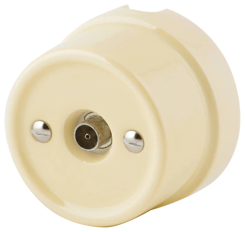 Ретро розетка ТВ Werkel a036797-СК цвет слоновая кость в купе с ретро проводкой - это отличное решение для современных интерьеров. Данная модель декоративной розетки особенно часто используется в интерьерах в стилях лофт, модерн, стимпанк, винтаж и минимализм.