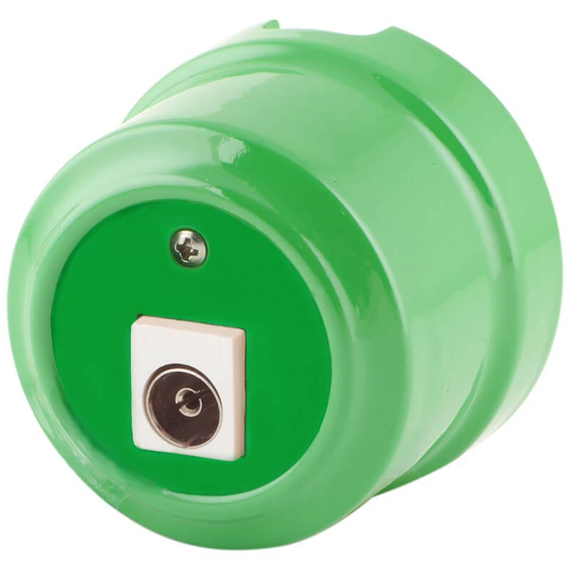 Ретро розетка ТВ 325-З Lindas цвет зеленый в купе с ретро проводкой - это отличное решение для современных интерьеров. Данная модель декоративной розетки особенно часто используется в интерьерах в стилях лофт, модерн, стимпанк, винтаж и минимализм.Ретро розетка 325-З Lindas цвет зеленый отвечает всем необходимым стандартам и ГОСТам, имеет сертификат качества. При выборе винтажной розетки Вы не сможете пройти мимо ретро розеток Lindas.Дизайнерская розетка белого цвета сочетается в комплектации с наружной ретро проводкой и винтажными выключателями. Ретро розетки для электропроводки и ее отделки органично соединяют в себе эстетичность и функциональность.