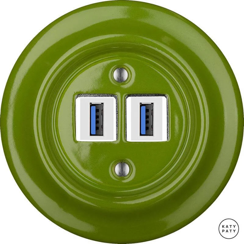 Ретро розетка NICHGsUSBw цвет ярко-зеленый от чешского бренда Katy Paty изготовлена вручную из фарфора. Данная модель выглядит презентабельно и отлично дополнит интерьер как в современном, так и в ретро стилях. Дизайнерская розетка Katy Paty отличается функциональностью и простотой в использовании. Данная модель разработана с учётом всех современных требований и соответствует европейским стандартам.Винтажная розетка NICHGsUSBw цвет ярко-зеленый прекрасно сочетается в комплектации с электротоварами для скрытого монтажа. Модель идёт в комплекте с фарфоровой рамкой, шурупы представлены в четырёх цветах на выбор: нержавейка, черный, серебро, латунь.