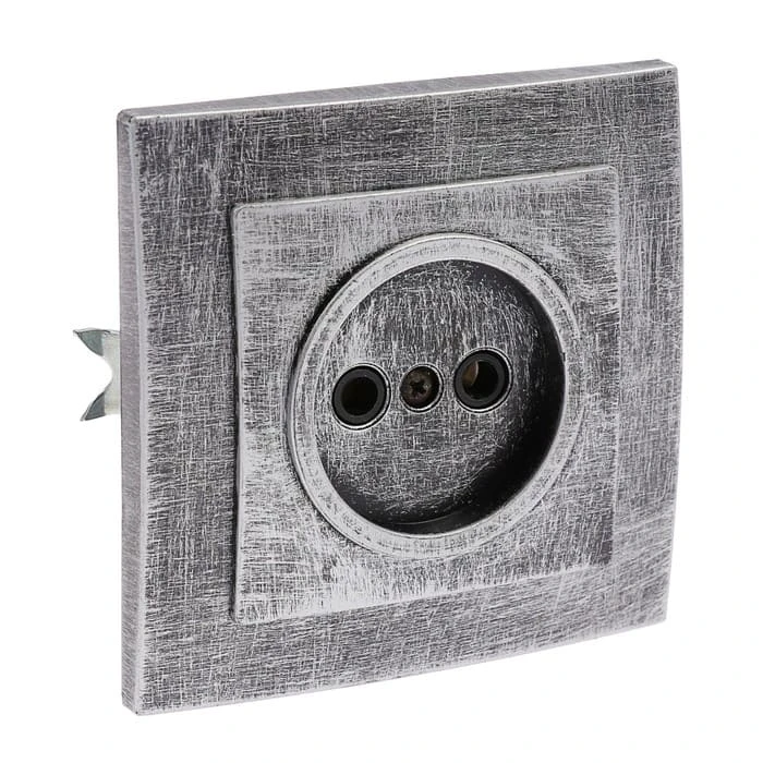 Розетка без заземляющего контакта 1 местная электрическая RE-SLVR1bzSl Р-Электро цвет серебро - это отличное решение для современных интерьеров. Данная розетка впишется в интерьеры в стилях лофт, модерн, стимпанк, винтаж и минимализм. Ретро розетка Р-Электро отвечает всем необходимым стандартам и ГОСТам, имеет сертификат качества. При выборе винтажной электрики Вы не сможете пройти мимо ретро розеток Р-Электро в цвете серебро. Дизайнерская розетка сочетается в комплектации с наружной ретро проводкой и винтажными выключателями. Ретро розетки для электропроводки и ее отделки органично соединяют в себе эстетичность и функциональность.
