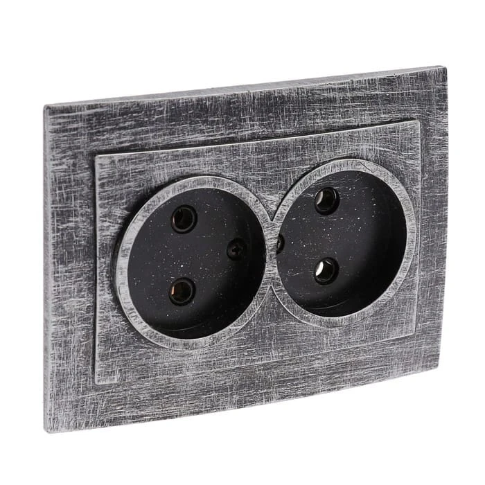Розетка без заземляющего контакта 2 местная электрическая RE-SLVR2bzSl Р-Электро цвет серебро - это отличное решение для современных интерьеров. Данная розетка впишется в интерьеры в стилях лофт, модерн, стимпанк, винтаж и минимализм. Ретро розетка Р-Электро отвечает всем необходимым стандартам и ГОСТам, имеет сертификат качества. При выборе винтажной электрики Вы не сможете пройти мимо ретро розеток Р-Электро в цвете серебро. Дизайнерская розетка сочетается в комплектации с наружной ретро проводкой и винтажными выключателями. Ретро розетки для электропроводки и ее отделки органично соединяют в себе эстетичность и функциональность.