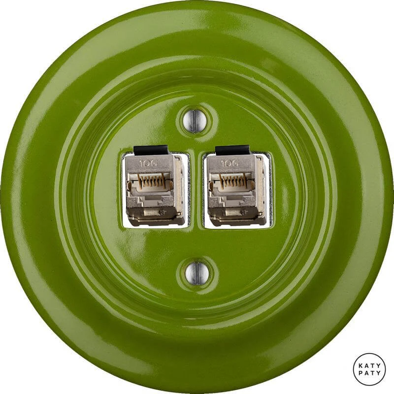 Ретро розетка NICHGsCat6a цвет ярко-зеленый от чешского бренда Katy Paty изготовлена вручную из фарфора. Данная модель выглядит презентабельно и отлично дополнит интерьер как в современном, так и в ретро стилях. Дизайнерская розетка Katy Paty отличается функциональностью и простотой в использовании. Данная модель разработана с учётом всех современных требований и соответствует европейским стандартам.Винтажная розетка NICHGsCat6a цвет ярко-зеленый прекрасно сочетается в комплектации с электротоварами для скрытого монтажа. Модель идёт в комплекте с фарфоровой рамкой, шурупы представлены в четырёх цветах на выбор: нержавейка, черный, серебро, латунь.