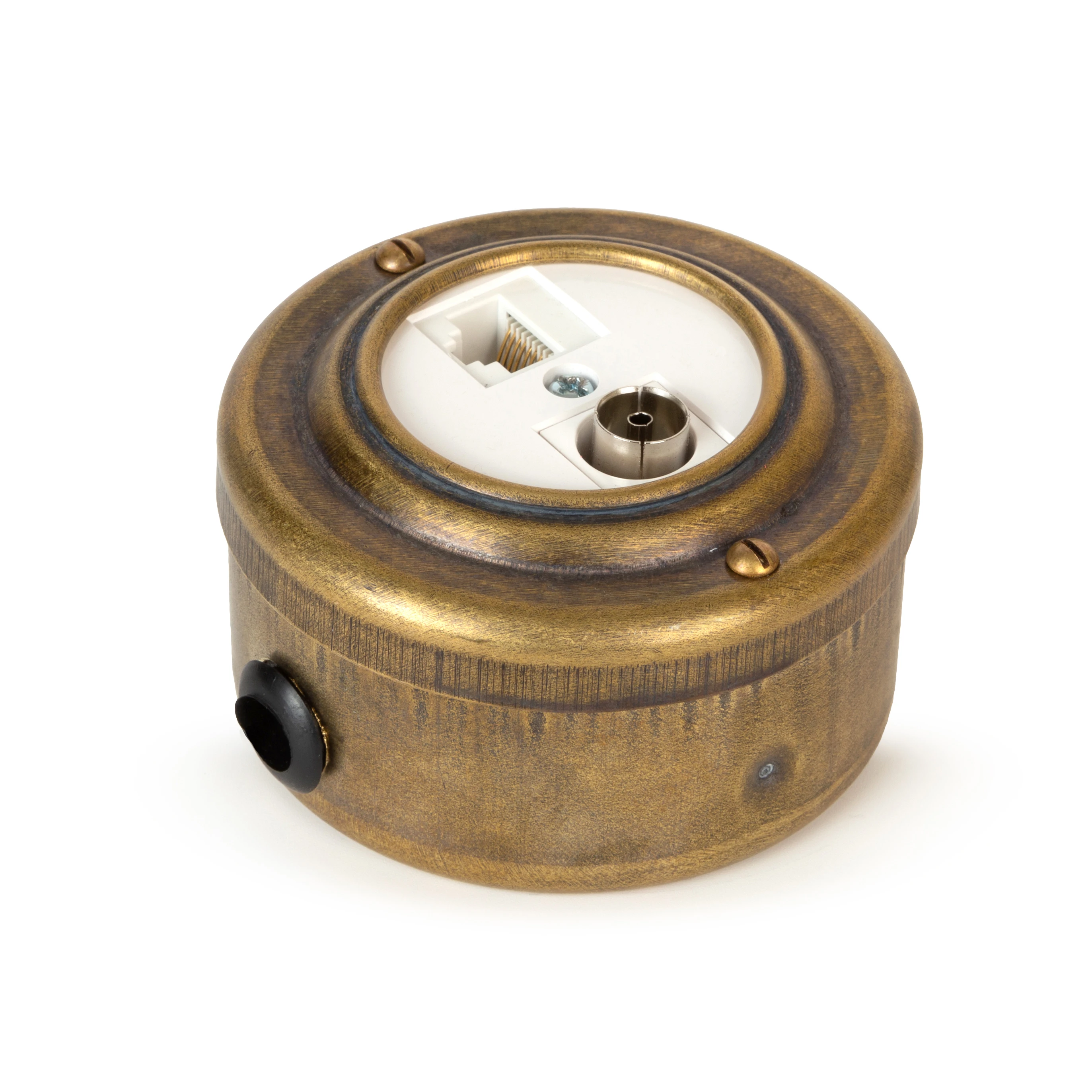 Розетка компьютерная RJ-45+TV кат. 5е с белой вставкой интернет, бронза 40401-1 Vintage-Brass