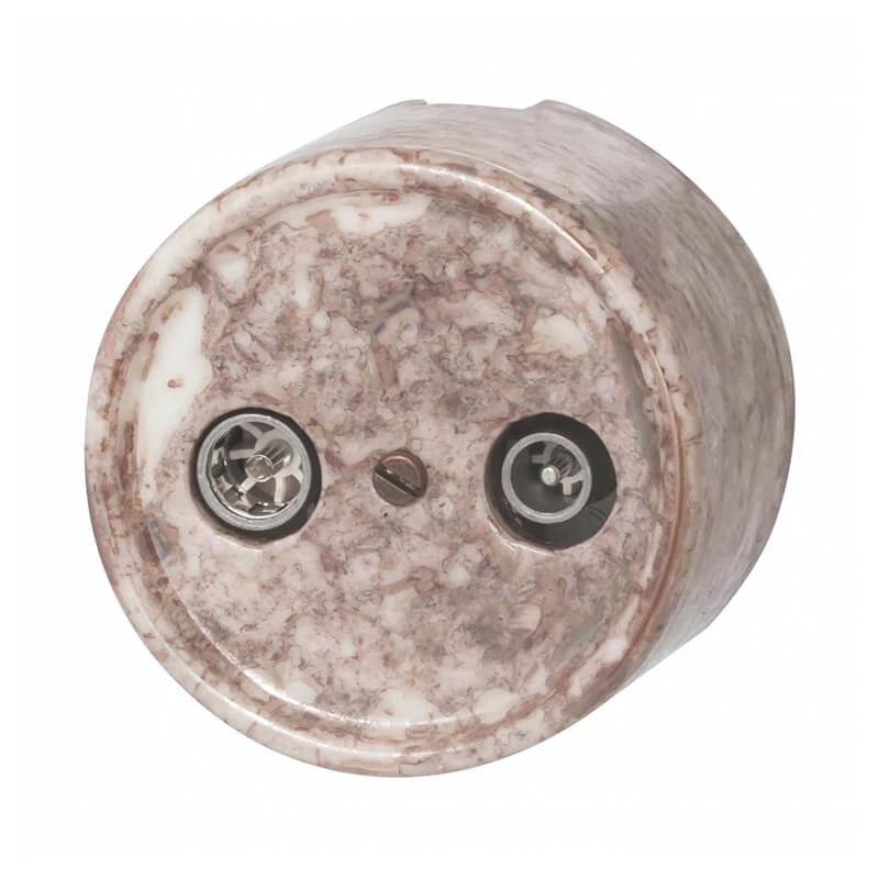 Ретро розетка ТВ B1-304-09 BIRONI цвет мрамор в купе с ретро проводкой - это отличное решение для современных интерьеров. Данная модель декоративной розетки особенно часто используется в интерьерах в стилях лофт, модерн, стимпанк, винтаж и минимализм.Ретро розетка B1-304-09 BIRONI цвет мрамор отвечает всем необходимым стандартам и ГОСТам, имеет сертификат качества. При выборе винтажной розетки Вы не сможете пройти мимо ретро розеток BIRONI.Дизайнерская розетка сочетается в комплектации с наружной ретро проводкой и винтажными выключателями. Ретро розетки для электропроводки и ее отделки органично соединяют в себе эстетичность и функциональность.