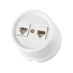 Ретро розетка интернет SQ1820-0051 TDM ELECTRIC цвет белый вместе с ретро проводкой - это отличное решение для современных интерьеров. Данная модель декоративной розетки особенно часто используется в интерьерах в стилях лофт, модерн, стимпанк, винтаж и минимализм.Ретро розетка SQ1820-0051 TDM ELECTRIC цвет белый отвечает всем необходимым стандартам и ГОСТам, имеет сертификат качества. При выборе винтажной розетки Вы не сможете пройти мимо ретро розеток TDM ELECTRIC.Дизайнерская розетка белого цвета сочетается в комплектации с наружной ретро проводкой и винтажными выключателями. Ретро розетки для электропроводки и ее отделки органично соединяют в себе эстетичность и функциональность.
