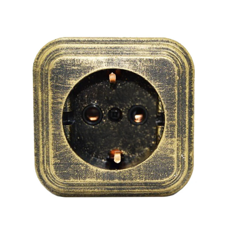 Розетка с заземляющим контактом 1 местная электрическая RE-LVR1Brz Р-Электро цвет бронза - это отличное решение для современных интерьеров. Данная розетка впишется в интерьеры в стилях лофт, модерн, стимпанк, винтаж и минимализм. Ретро розетка Р-Электро отвечает всем необходимым стандартам и ГОСТам, имеет сертификат качества. При выборе винтажной электрики Вы не сможете пройти мимо ретро розеток Р-Электро в цвете бронза. Дизайнерская розетка сочетается в комплектации с наружной ретро проводкой и винтажными выключателями. Ретро розетки для электропроводки и ее отделки органично соединяют в себе эстетичность и функциональность.