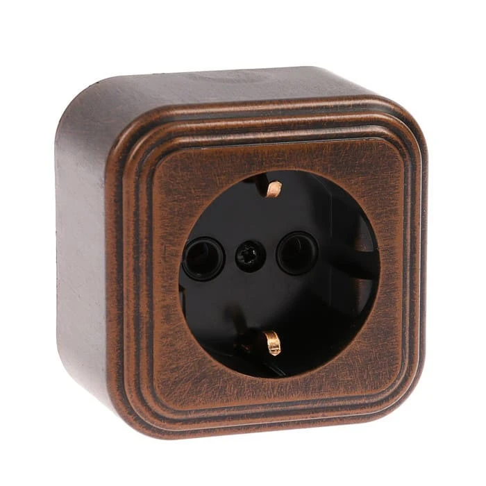 Розетка с заземляющим контактом 1 местная электрическая RE-LVR1Cp Р-Электро цвет медь - это отличное решение для современных интерьеров. Данная розетка впишется в интерьеры в стилях лофт, модерн, стимпанк, винтаж и минимализм. Ретро розетка Р-Электро отвечает всем необходимым стандартам и ГОСТам, имеет сертификат качества. При выборе винтажной электрики Вы не сможете пройти мимо ретро розеток Р-Электро в цвете медь. Дизайнерская розетка сочетается в комплектации с наружной ретро проводкой и винтажными выключателями. Ретро розетки для электропроводки и ее отделки органично соединяют в себе эстетичность и функциональность.