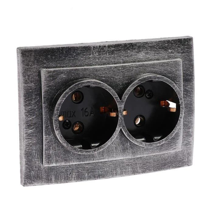 Розетка с заземляющим контактом 2 местная электрическая RE-SLVR2Sl Р-Электро цвет серебро - это отличное решение для современных интерьеров. Данная розетка впишется в интерьеры в стилях лофт, модерн, стимпанк, винтаж и минимализм. Ретро розетка Р-Электро отвечает всем необходимым стандартам и ГОСТам, имеет сертификат качества. При выборе винтажной электрики Вы не сможете пройти мимо ретро розеток Р-Электро в цвете серебро. Дизайнерская розетка сочетается в комплектации с наружной ретро проводкой и винтажными выключателями. Ретро розетки для электропроводки и ее отделки органично соединяют в себе эстетичность и функциональность.