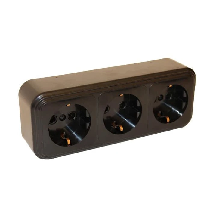 Розетка с заземляющим контактом 3 местная электрическая RE-LVR3Bl Р-Электро цвет черный - это отличное решение для современных интерьеров. Данная розетка впишется в интерьеры в стилях лофт, модерн, стимпанк, винтаж и минимализм. Ретро розетка Р-Электро отвечает всем необходимым стандартам и ГОСТам, имеет сертификат качества. При выборе винтажной электрики Вы не сможете пройти мимо ретро розеток Р-Электро в цвете черный. Дизайнерская розетка сочетается в комплектации с наружной ретро проводкой и винтажными выключателями. Ретро розетки для электропроводки и ее отделки органично соединяют в себе эстетичность и функциональность.