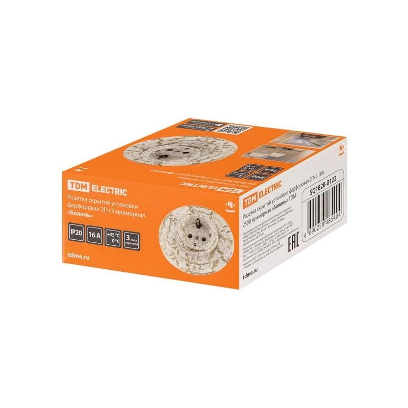 Ретро розетка электрическая SQ1820-0122 TDM ELECTRIC цвет мраморный вместе с ретро проводкой - это отличное решение для современных интерьеров. Данная модель декоративной розетки особенно часто используется в интерьерах в стилях лофт, модерн, стимпанк, винтаж и минимализм.Ретро розетка SQ1820-0122 TDM ELECTRIC цвет мраморный отвечает всем необходимым стандартам и ГОСТам, имеет сертификат качества. При выборе винтажной розетки Вы не сможете пройти мимо ретро розеток TDM ELECTRIC.Дизайнерская розетка белого цвета сочетается в комплектации с наружной ретро проводкой и винтажными выключателями. Ретро розетки для электропроводки и ее отделки органично соединяют в себе эстетичность и функциональность.