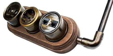 Розетка телефон + компьютер B1-303-25 BIRONI цвет бронза в купе с ретро проводкой - это отличное решение для современных интерьеров. Данная модель декоративной розетки особенно часто используется в интерьерах в стилях лофт, модерн, стимпанк, винтаж и минимализм.Ретро розетка B1-303-25 BIRONI цвет бронза отвечает всем необходимым стандартам и ГОСТам, имеет сертификат качества. При выборе винтажной розетки Вы не сможете пройти мимо ретро розеток BIRONI.Дизайнерская розетка сочетается в комплектации с наружной ретро проводкой и винтажными выключателями. Ретро розетки для электропроводки и ее отделки органично соединяют в себе эстетичность и функциональность.