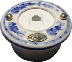 Розетка телефонная малая, белый с узором под Гжель,18280И-80 ГусевЪ отлично подходит для деревянных домов, бань, интерьеров в стиле лофт, прованс, шебби-шик и стимпанк. Данная модель также гармонично впишется в современные минималистичные дизайны и создаст чарующую винтажную атмосферу.
