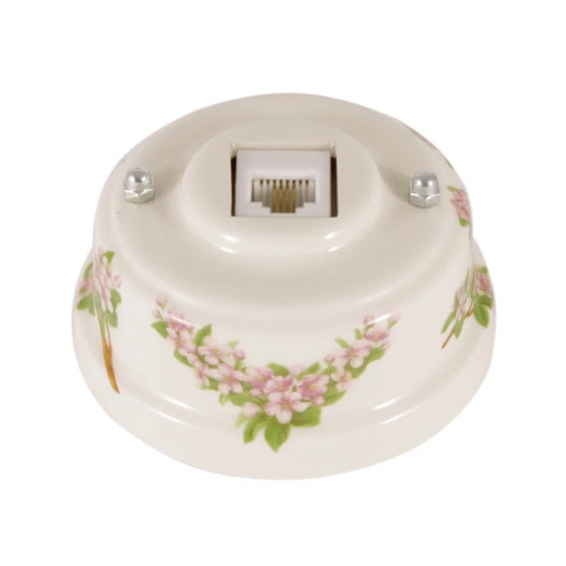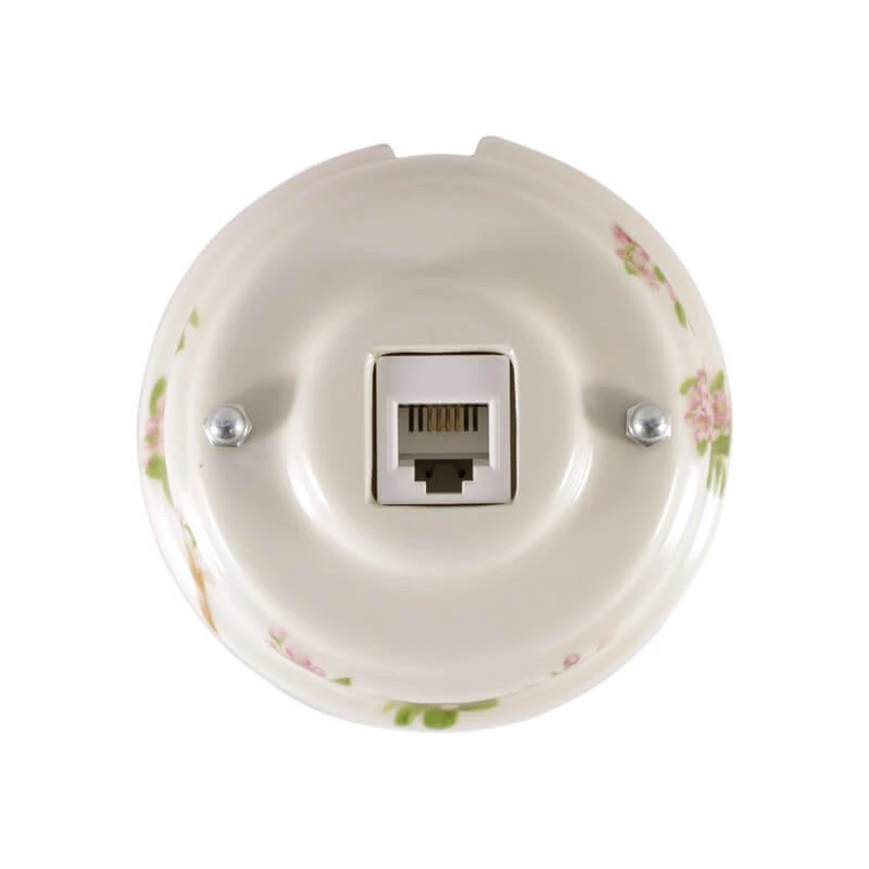 Ретро розетка телефонная РТРС ЛЕАНЗА цвет розовые цветы вместе с ретро проводкой - это отличное решение для современных интерьеров. Данная модель декоративной розетки особенно часто используется в интерьерах в стилях лофт, модерн, стимпанк, винтаж и минимализм. Ретро розетка РТРС ЛЕАНЗА цвет розовые цветы отвечает всем необходимым стандартам и ГОСТам, имеет сертификат качества. При выборе винтажной розетки Вы не сможете пройти мимо ретро розеток LEANZA. Дизайнерская розетка цвет розовые цветы сочетается в комплектации с наружной ретро проводкой и винтажными выключателями. Ретро розетки для электропроводки и ее отделки органично соединяют в себе эстетичность и функциональность.