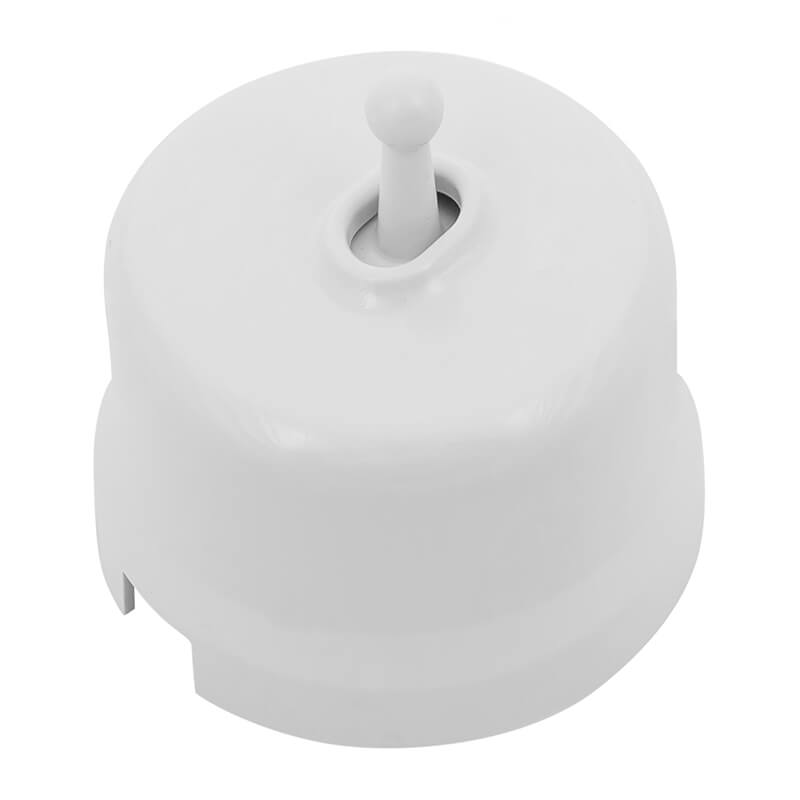 Ретро выключатель прекрасно сочетается в комплектации с интерьерными ретро проводами, наружными латунными трубками или даже с внутренней скрытой проводкой. Выключатель Jantera цвета белый выполнен из пластика, что придает такому интерьерному аксессуару особую лёгкость и шарм!