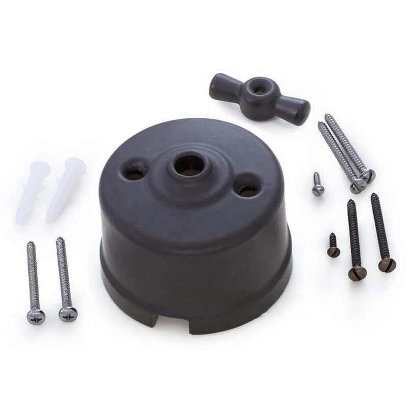 Корпус ретро выключателя с ручкой SUN-LUMEN 058-971 черный матовый представляет отличное решение для современных интерьеров. Данная модель выключателя особенно популярна в интерьерах в стилях лофт, стимпанк и минимализм. Выключатель одноклавишный SUN-LUMEN отвечает всем необходимым стандартам и ГОСТам, имеет высочайшее качество, подтверждённое сертификатами соответствия.Человек с чувством вкуса при выборе электрики не пройдёт без интереса мимо ретро выключателей SUN-LUMEN. Винтажный черный матовый выключатель отлично сочетается в комплектации с наружной ретро проводкой, ретро изоляторами и распаечной коробкой.Таким образом, приобретая комплект ретро электрики Вы получаете не только электрификацию Вашего дома, но и отличное декоративное решение!