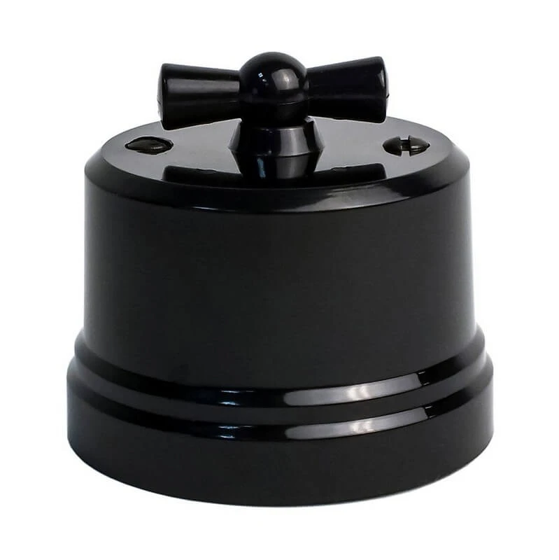 Ретро выключатель Basic Edisel цвет черный прекрасно подходит для винтажных интерьеров и лофт пространств. Выключатель поворотный KBSw1-04 Edisel отличного качества, он разработан с учётом всех современных требований, стандартов и ГОСТов. Данный ретро выключатель прекрасно сочетается в комплектации с проводами, изоляторами, розетками и распределительными коробками. Выключатель Edisel цвет черный выполнен в ретро стиле, что придает такому интерьерному аксессуару особый шарм!