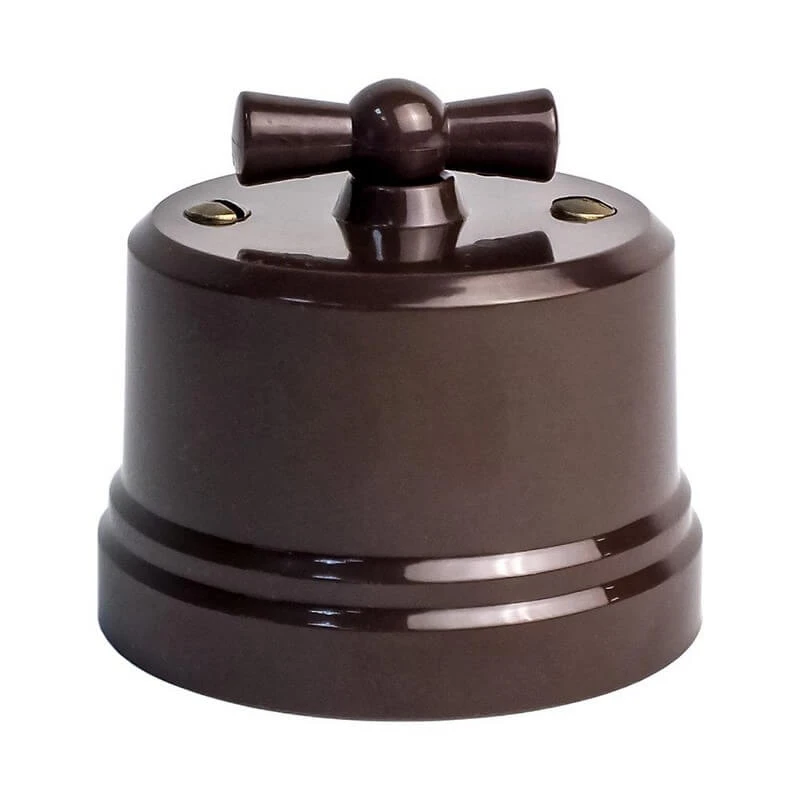 Ретро выключатель Basic Edisel цвет коричневый прекрасно подходит для винтажных интерьеров и лофт пространств. Выключатель поворотный KBSw2-03 Edisel отличного качества, он разработан с учётом всех современных требований, стандартов и ГОСТов. Данный ретро выключатель прекрасно сочетается в комплектации с проводами, изоляторами, розетками и распределительными коробками. Выключатель Edisel цвет коричневый выполнен в ретро стиле, что придает такому интерьерному аксессуару особый шарм!