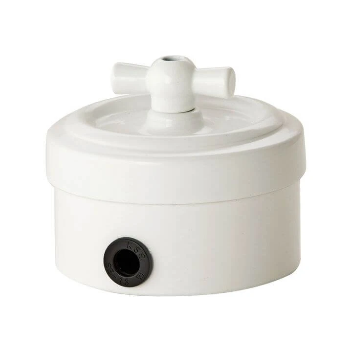Дизайнерский 2-х позиционный выключатель белый, М1-11-20 Vintage для наружного монтажа - это отличное решение для современных интерьеров. Данная модель выключателя особенно популярна в интерьерах в стилях лофт, модерн, стимпанк, винтаж и минимализм, и, конечно же, в домах с деревянной отделкой.