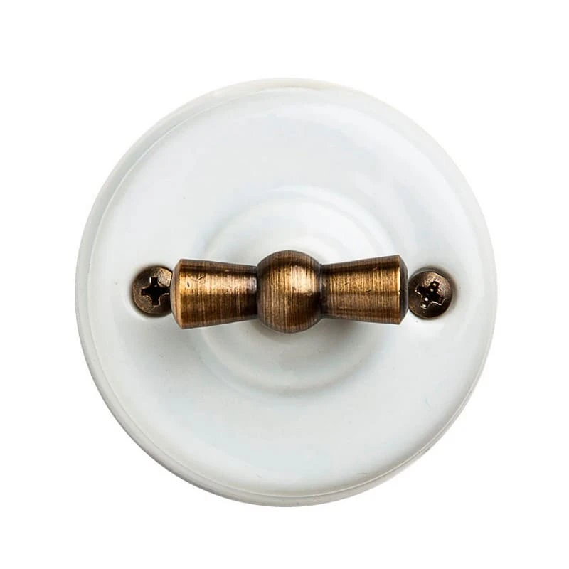 Ретро выключатель Salvador белого цвета прекрасно подходит для современных интерьерных решений. Винтажный выключатель Сальвадор OP31WT отменного качества. Он разработан с учётом всех современных требований, стандартов и ГОСТов.Белый - один из самых популярных цветов. Поэтому не удивительно, что такой ретро выключатель наиболее часто используется дизайнерами, как при классических интерьерных решениях, так и в стилях лофт, стимпанк, эко. Данный ретро выключатель прекрасно сочетается в комплектации с интерьерными ретро проводами, наружными латунными трубками или даже с внутренней скрытой проводкой. Белый выключатель Salvador выполнен из фарфора и патинированной латуни, что придает такому интерьерному аксессуару особый шарм!