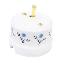 Керамический ретро выключатель Lindas цвет белый с узором васильки прекрасно подходит для современных интерьерных решений. Винтажный тумблерный выключатель Lindas 34418-B отменного качества. Он разработан с учётом всех современных требований, стандартов и ГОСТов.Так как белый с узором васильки - один из самых популярных цветов. Поэтому не удивительно, что такой ретро выключатель наиболее часто используется дизайнерами, как при классических интерьерных решениях, так и в стилях лофт, стимпанк, эко. Данный ретро выключатель прекрасно сочетается в комплектации с интерьерными ретро проводами, наружными латунными трубками или даже с внутренней скрытой проводкой. Выключатель Lindas цвет белый с узором васильки выполнен из керамики, что придает такому интерьерному аксессуару особый шарм!
