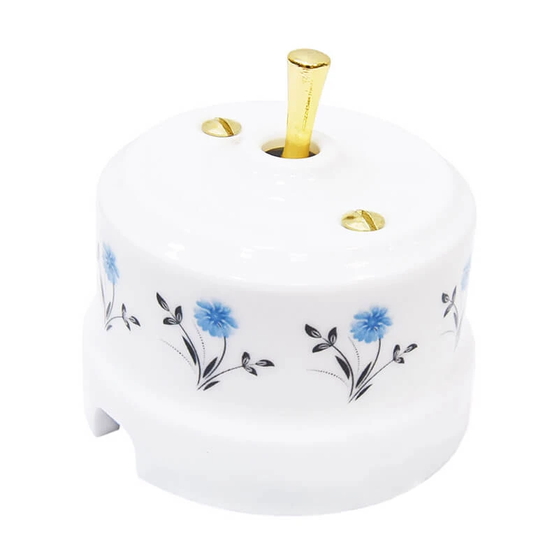 Керамический ретро выключатель Lindas цвет белый с узором васильки прекрасно подходит для современных интерьерных решений. Винтажный тумблерный выключатель Lindas 34518-G отменного качества. Он разработан с учётом всех современных требований, стандартов и ГОСТов.Так как белый с узором васильки - один из самых популярных цветов. Поэтому не удивительно, что такой ретро выключатель наиболее часто используется дизайнерами, как при классических интерьерных решениях, так и в стилях лофт, стимпанк, эко. Данный ретро выключатель прекрасно сочетается в комплектации с интерьерными ретро проводами, наружными латунными трубками или даже с внутренней скрытой проводкой. Выключатель Lindas цвет белый с узором васильки выполнен из керамики, что придает такому интерьерному аксессуару особый шарм!