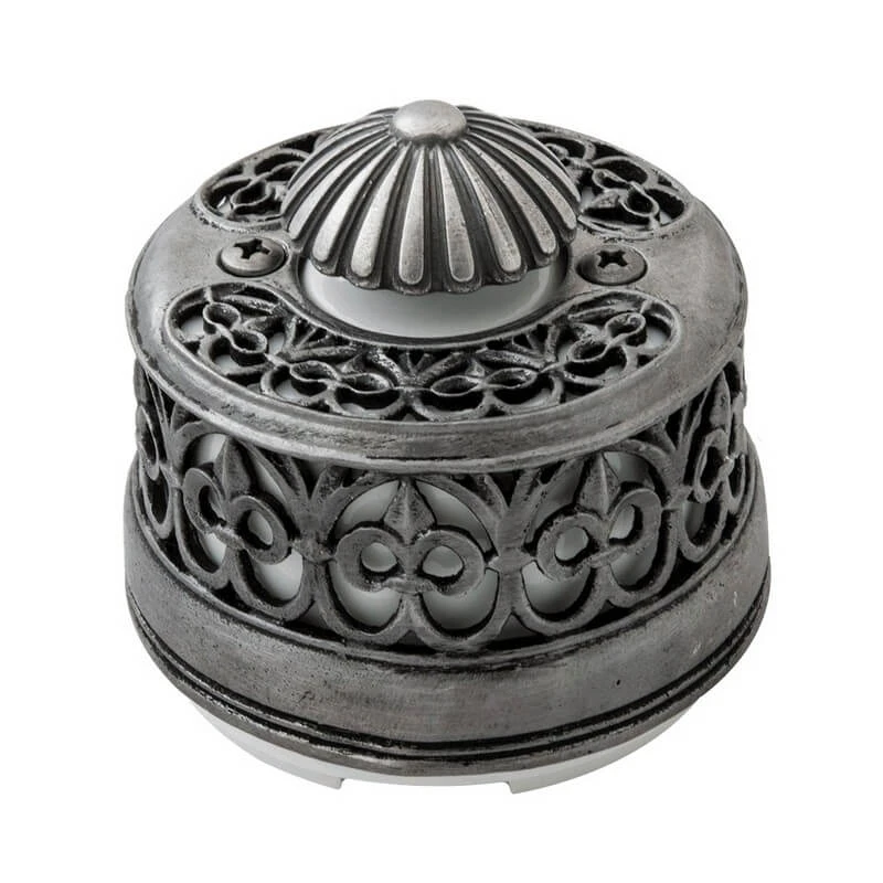 Ретро выключатель OP.DM.DN.WT Salvador цвет белый/ состаренное серебро прекрасно подходит для современных интерьерных решений. Винтажный выключатель Сальвадор OP.DM.DN.WT отменного качества. Он разработан с учётом всех современных требований, стандартов и ГОСТов.Белый - один из самых популярных цветов. Поэтому не удивительно, что такой ретро выключатель наиболее часто используется дизайнерами, как при классических интерьерных решениях, так и в стилях лофт, стимпанк, эко.Данный ретро выключатель прекрасно сочетается в комплектации с интерьерными ретро проводами, наружными латунными трубками или даже с внутренней скрытой проводкой. Белый выключатель Salvador с декоративной накладкой в цвете состаренного серебра выглядит оригинально!