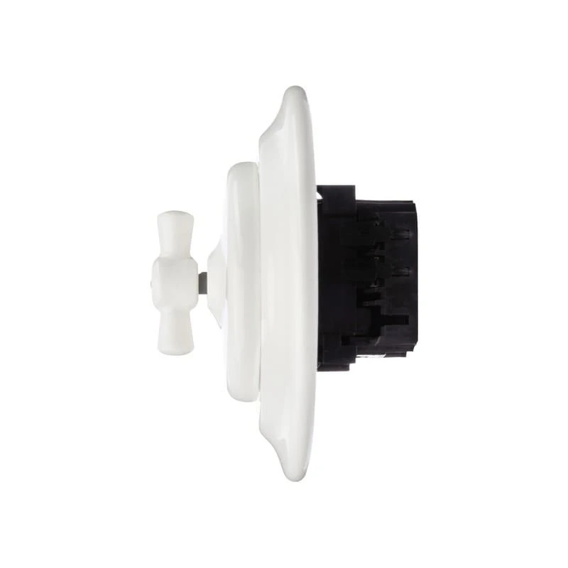 Ретро выключатель TDM ELECTRIC цвет белый прекрасно подходит для современных интерьеров. Винтажный выключатель TDM ELECTRIC SQ1820-0020 отличного качества. Он разработан с учётом всех современных требований, стандартов и ГОСТов.Так как белый - популярный цвет. Не удивительно, что данный ретро выключатель часто используется дизайнерами, как при классических интерьерных решениях, так и в стилях лофт, стимпанк, эко.Ретро выключатель прекрасно сочетается в комплектации с интерьерными ретро проводами, наружными латунными трубками или даже с внутренней скрытой проводкой. Выключатель TDM ELECTRIC цвета белый выполнен из пластика, что придает такому интерьерному аксессуару особую лёгкость и шарм!