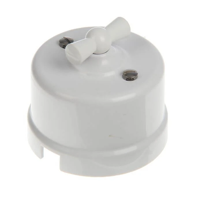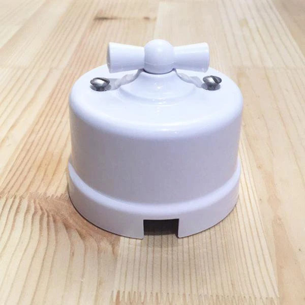 Ретро выключатель BIRONI цвет белый прекрасно подходит для современных интерьерных решений. Винтажный выключатель BIRONI В1-203-21 отменного качества. Он разработан с учётом всех современных требований, стандартов и ГОСТов.Так как белый - один из самых популярных цветов. Поэтому не удивительно, что такой ретро выключатель наиболее часто используется дизайнерами, как при классических интерьерных решениях, так и в стилях лофт, стимпанк, эко. Данный ретро выключатель прекрасно сочетается в комплектации с интерьерными ретро проводами, наружными латунными трубками или даже с внутренней скрытой проводкой. Выключатель BIRONI цвета белый выполнен из пластика, что придает такому интерьерному аксессуару особую лёгкость и шарм!'